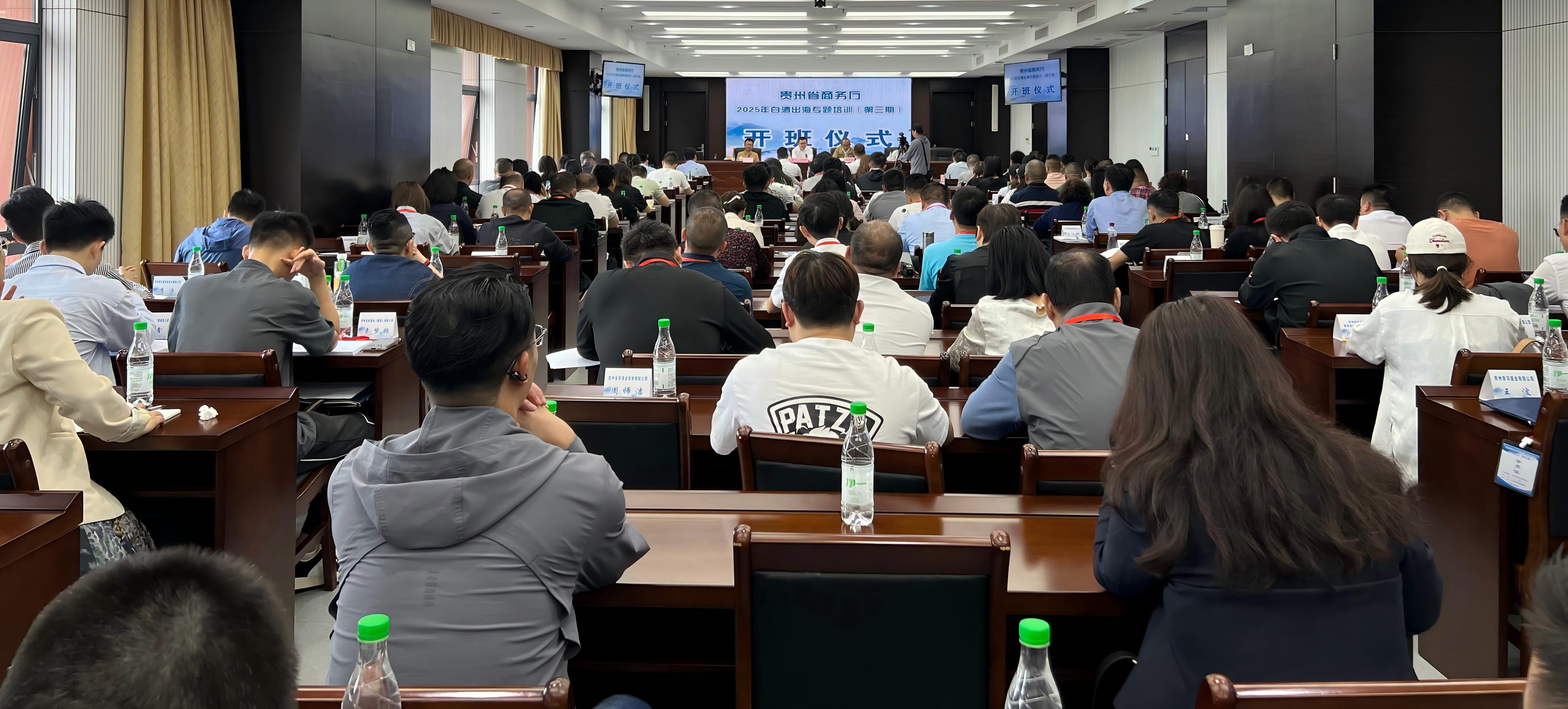 为积极响应省委省政府有关推进白酒出口海外的工作部署,落实贵州省商务厅黔酒出海选品会议要求,2025年9月27日-9月29日,贵州省酒业协会组织二十余款“贵州精品酒”企业及十余家会员单位参加了2025年白酒出海专题培训。本次培训在贵阳综合保税区举行,贵州省商务厅、贵州省酒业协会、贵阳综合保税区、国际市场发展战略专家等相关职能负责人出席,贵州卫视全程报道。