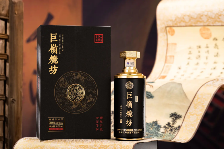 巨岭烧坊·礼颂酒,以“感恩怀德,礼颂山河”为精神内核,是一款经典老派酱香白酒。其包装典雅大气,采用黑色双开盒设计,彰显东方礼仪之风,自饮赠礼皆宜。
